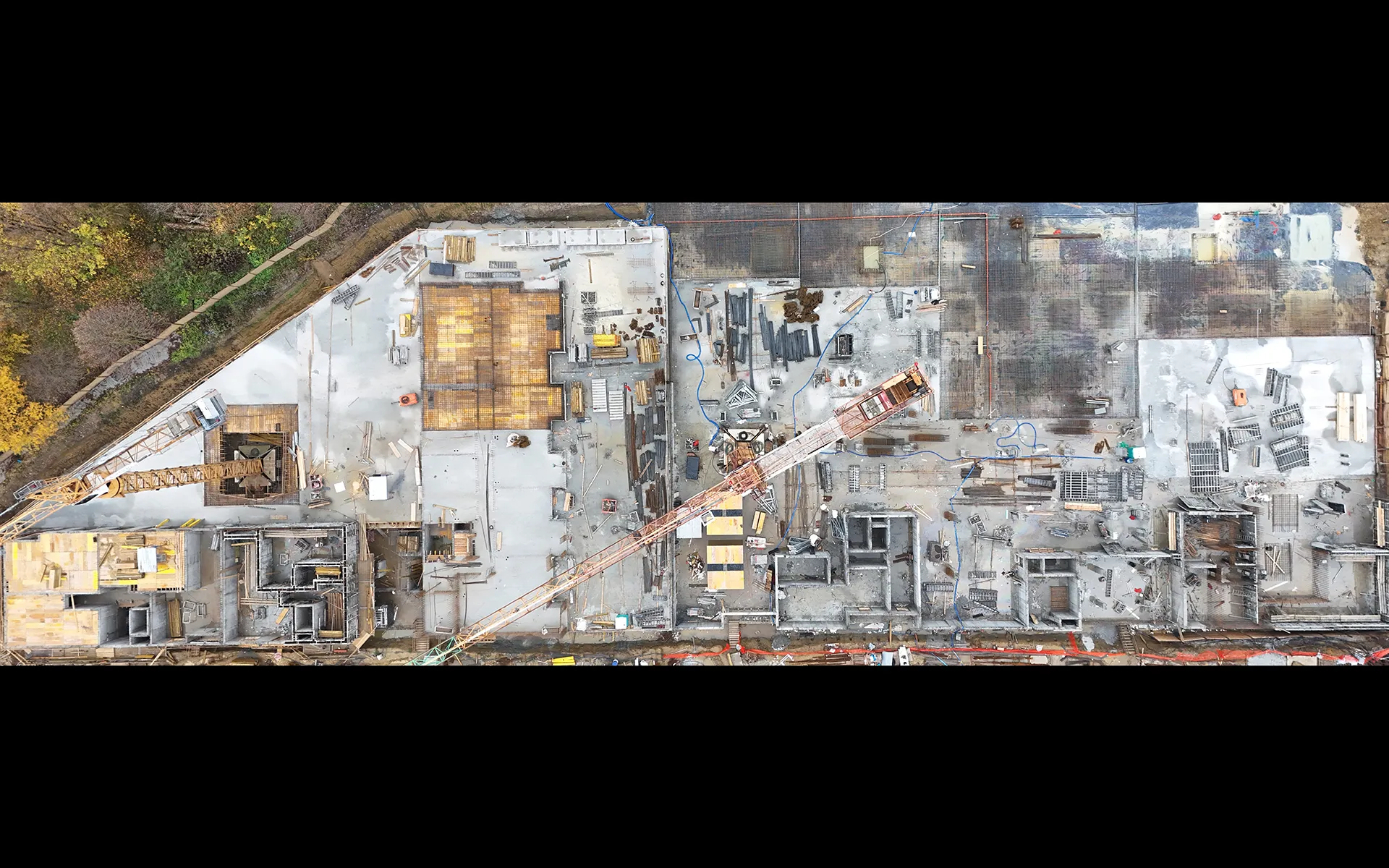 2025.11.28 - Budynek B1 - widok na patio i klatki A, B, C